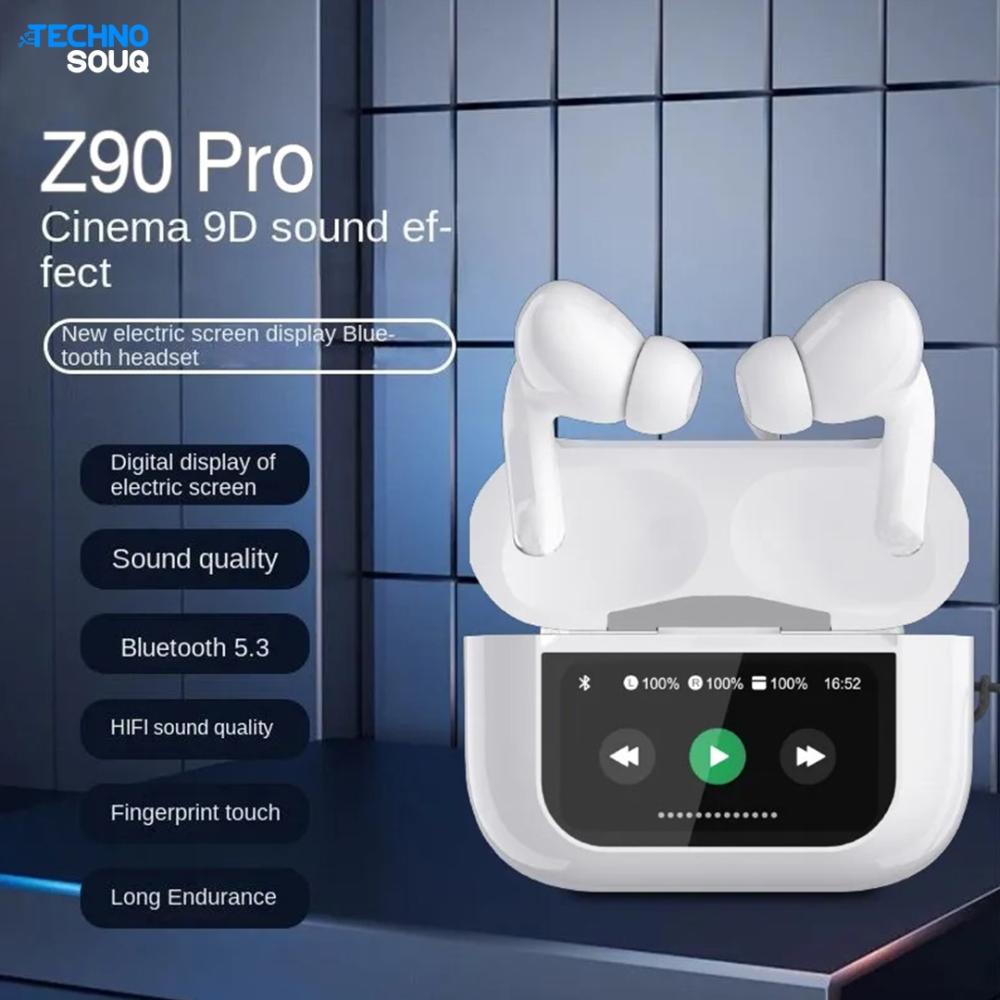 - عمر بطارية طويل: بفضل وقت تشغيل يصل إلى 24 ساعة مع علبة الشحن، تضمن سماعات Z90PRO الاستمتاع بالموسيقى والمكالمات دون انقطاع طوال اليوم.